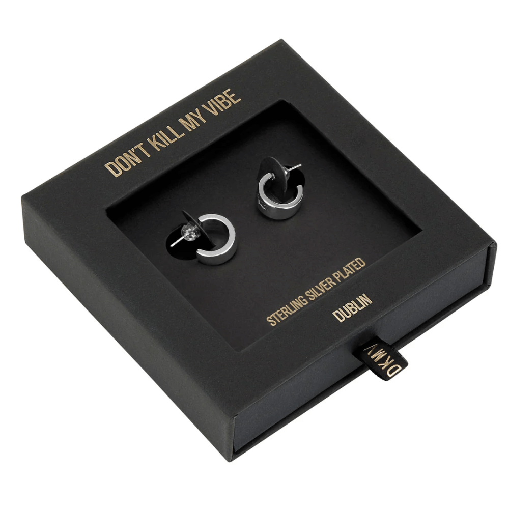Celebrate love with a subtle sparkle in the A Lil Bit Of Grá Hoop Earrings in Silver. These chunky mini hoops measure 14mm x 6mm x 2mm and are crafted from 100% recycled solid brass, plated in sleek sterling silver for a timeless finish. Engraved with “Grá”—the Irish word for love—in the designers’ own handwriting, each pair carries a personal touch and a nod to Irish heritage. Designed in Ireland and featuring the signature DKMV mark, they come nestled in a soft cotton duster bag, making them a meaningful gift or a cherished everyday piece.