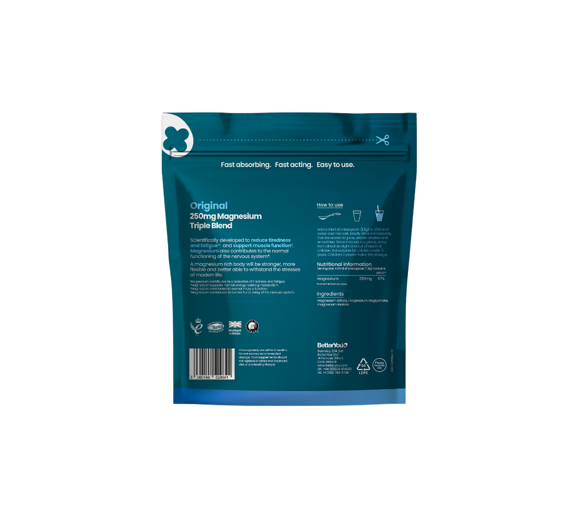 BetterYou Magnesium Original Max Powder is a fast-absorbing magnesium supplement designed to support muscle function, energy production, and overall well-being. This easy-to-mix powder is perfect for daily use, it provides an effective and natural way to maintain optimal magnesium levels for a healthier, more balanced lifestyle.