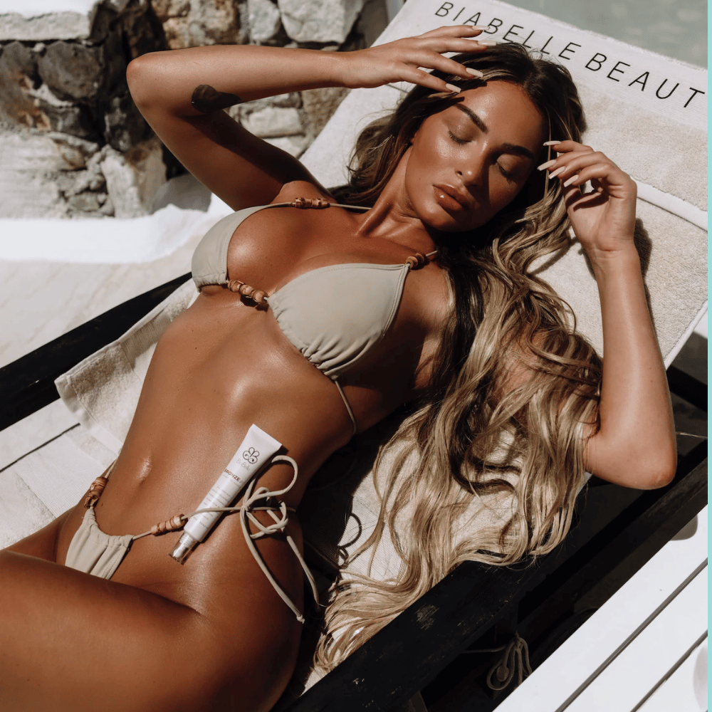 Transform your complexion with BiaBelle's NEW & exclusive Bronze Me Airbrush Drops! Our revolutionary, skin-tanning elixir blends Argan Oil, Niacinimide, Vitamins, and our signature seaweed extracts and Hyaluronic Acid – for a naturally radiant, anti-aging glow. Use on its own or blend with your favourite skin care, SPF or foundation to leave your face glowing, hydrated and beautiful!