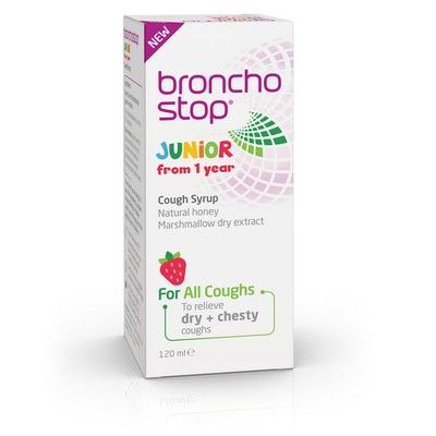 Bronchostop Junior from 1 year+ is a strawberry flavoured cough medicine that can be used to relive dry and/or chesty coughs.