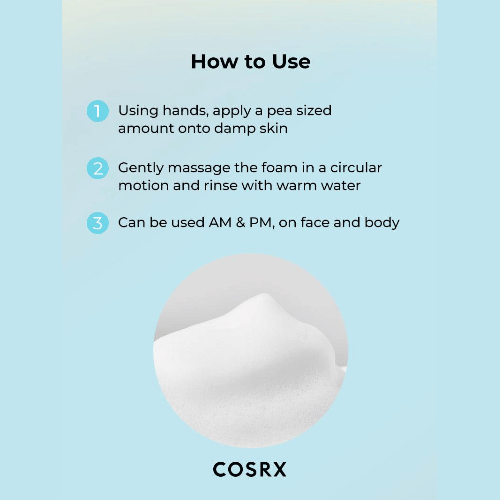 Use morning and night, after removing makeup. Begin with wet hands and face. Squeeze a proper amount onto your hand and foam up. Gently massage onto face avoiding the eye and mouth area. Rinse with warm water.