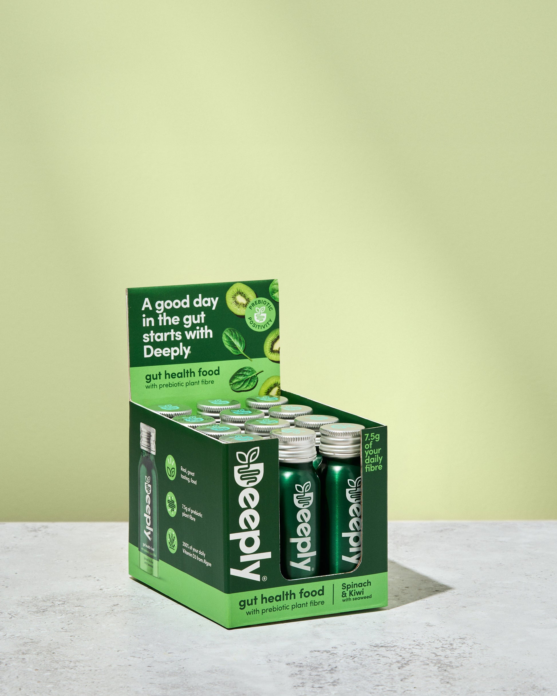 Prebiotic & Plant Fibre blend (Water, Native Chicory Root Inulin, Acacia Fibre, Baobab Powder, Jerusalem Artichoke Powder, Seaweed Extract), Apple Puree, Kiwi Puree, Pineapple Juice NFC, Lime Juice NFC, Spinach Leaf Powder, Spirulina and Safflower extract, Vitamins (D3 from Algae, B9 from Spinach)