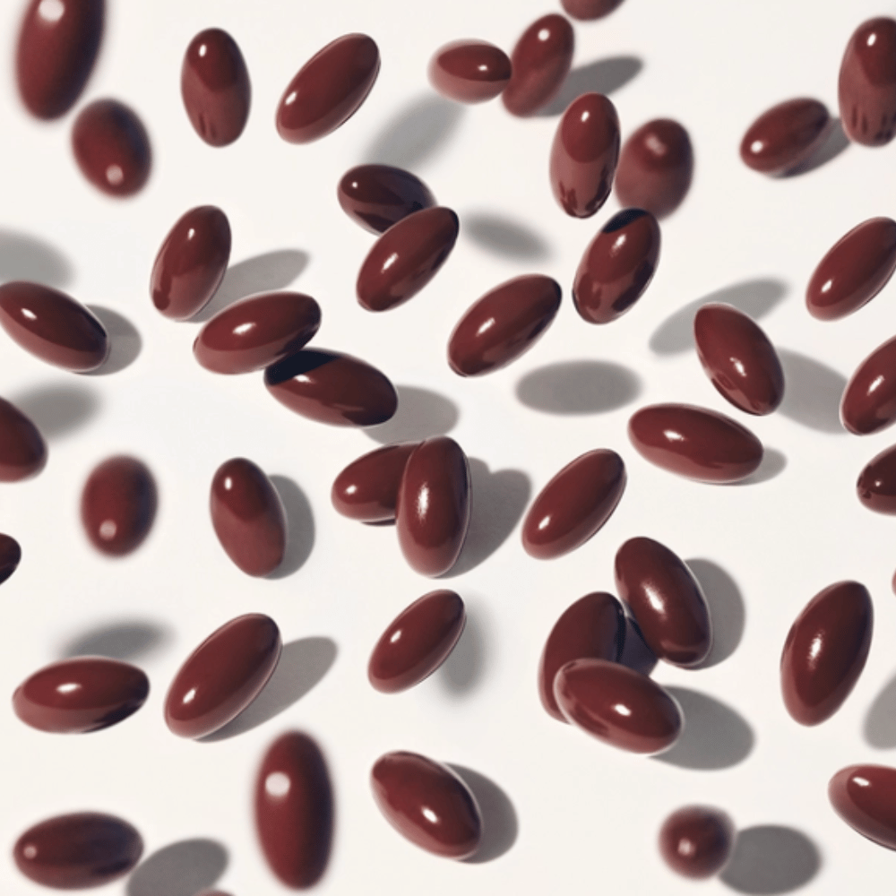 INGREDIENTS : GELATINE BOVINE. MACERAT HUILEUX DE RACINE DE CAROTTE (DAUCUS CAROTA L.). AGENT DE CHARGE : GLYCEROL. EXTRAIT DE FRUIT D'ACEROLA (MALPIGHIA PUNICIFOLIA L.) TITRE EN VITAMINE C . BISGLYCINATE DE ZINC. HUILE DE GRAINE DE BOURRACHE (BORAGO OFFICINALIS L.). HUILE DE **POISSON**. EPAISSISSANTS : MONO ET DIGLYCERIDES D’ACIDES GRAS. HUILE DE SON DE RIZ (ORYZA SATIVA L.). ACETATE DE DL-ALPHA-TOCOPHEROL (VITAMINE E). ACIDE L-ASCORBIQUE (VITAMINE C). LEVURE DE BIERE INACTIVEE. D-PANTOTHENATE DE CALCIUM (ACIDE PANTOTHENIQUE). HUILE DE GERME DE **BLÉ** (TRITICUM AESTIVUM L.). AGENT DE CHARGE : LECITHINE DE COLZA. GAMMA-ORYZANOL. COLORANT : OXYDES ET HYDROXYDES DE FER. CHLORHYDRATE DE PYRIDOXINE (VITAMINE B6). AROME CEREALE. RIBOFLAVINE (VITAMINE B2). D-BIOTINE.