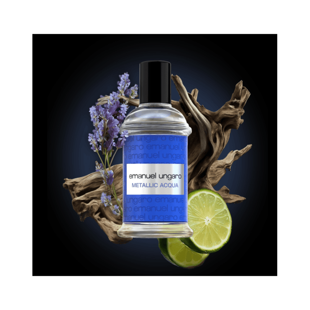 Metallic Acqua by Emanuel Ungaro is a Woody Aromatic fragrance for men. This is a new fragrance. Metallic Acqua was launched in 2024. Top notes are Bergamot, Ambrette and Sage; middle notes are Lavender, Labdanum and Sichuan Pepper; base notes are Cedarwood, Amberwood and Patchouli.