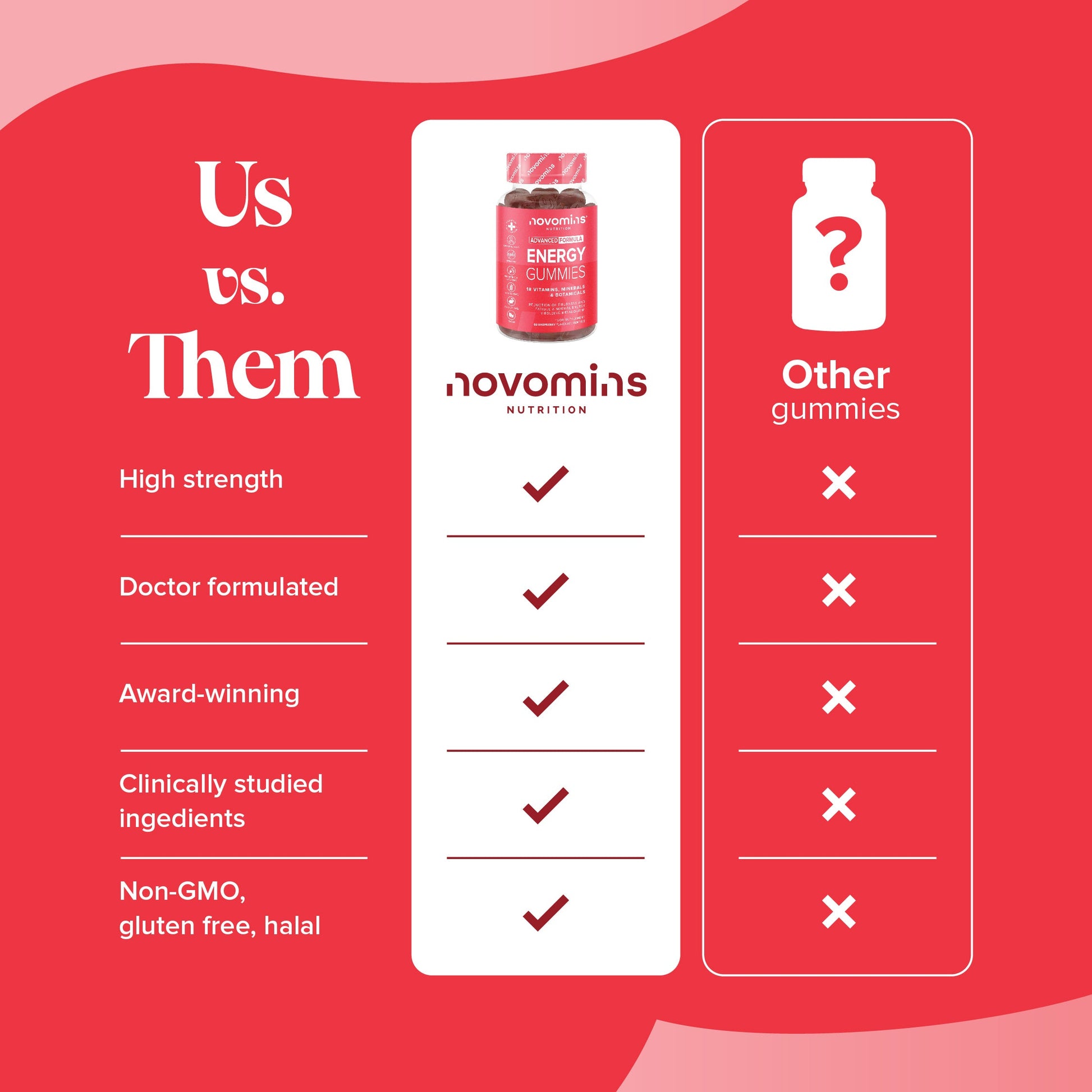 Experience the benefits of Energy Gummies! Formulated to stop the crash often felt after stimulants such as coffee, our gummies contain superfoods and essential vitamins, providing you with a natural and sustained source of energy and alertness.