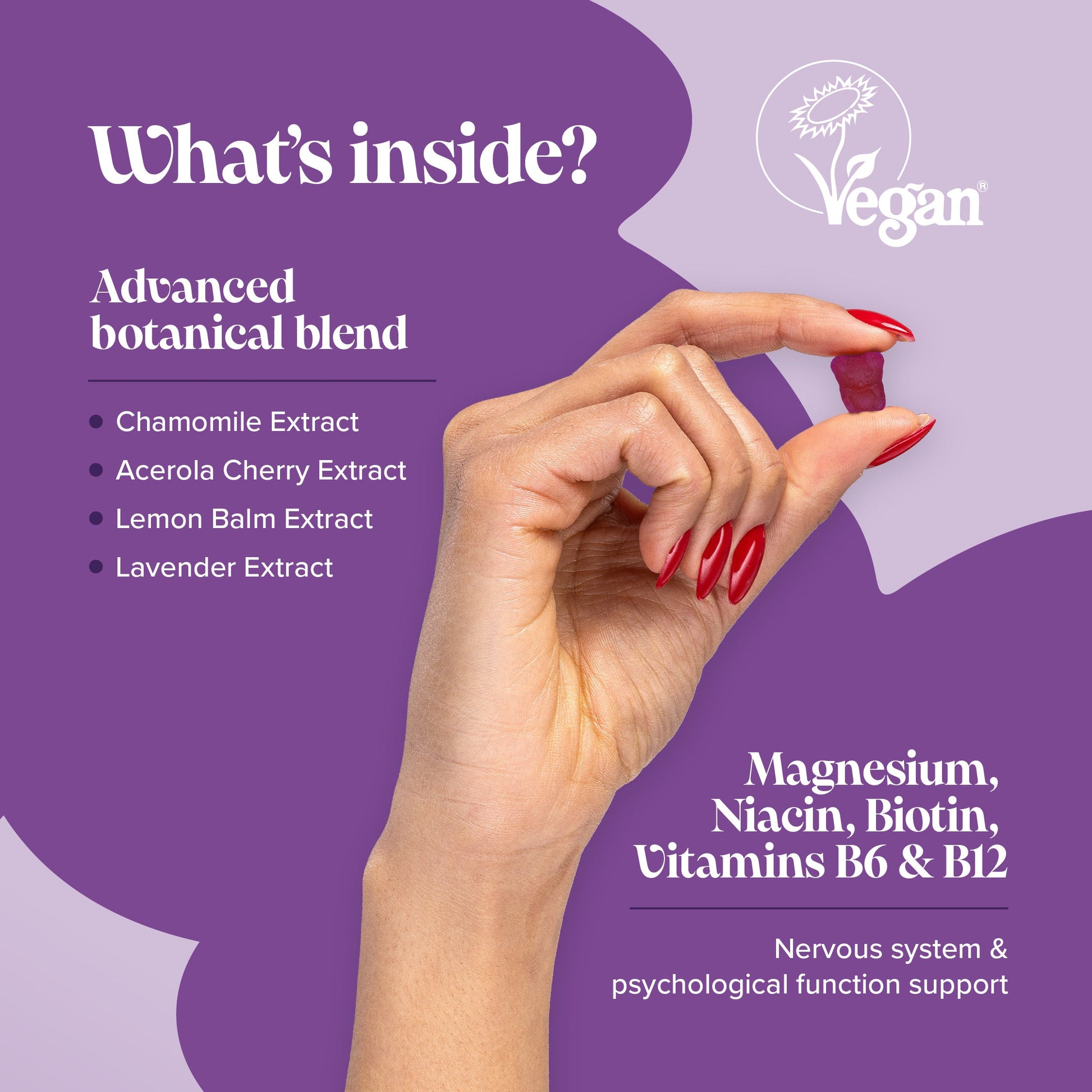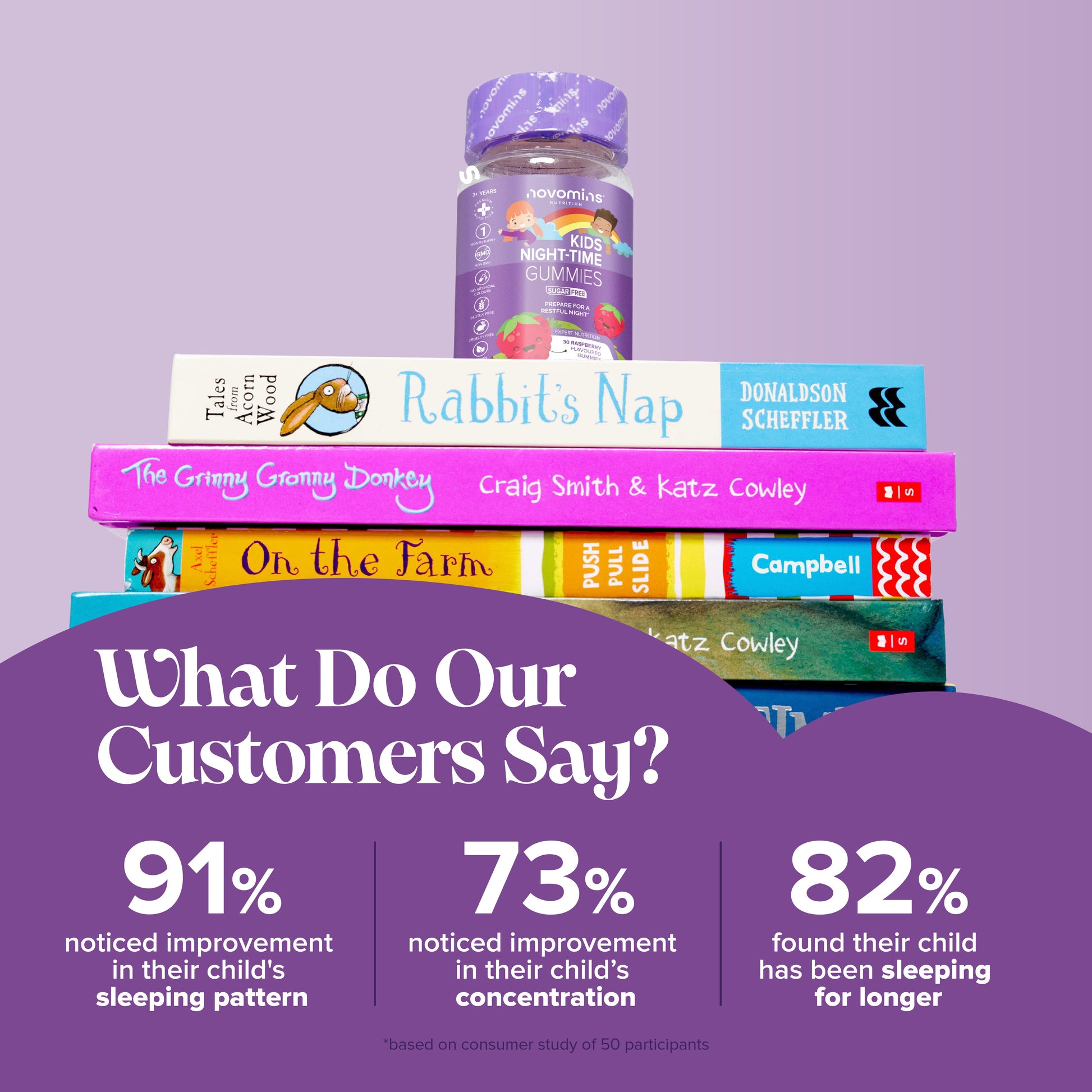 The ultimate mum hack to resolve bedtime battles, our sleep gummies for kids are uniquely formulated with 11 sleep-enhancing ingredients such as lavender extract, magnesium, L-theanine, vitamin B12 and more to help your child relax, reduce fatigue and support a healthy sleep cycle.