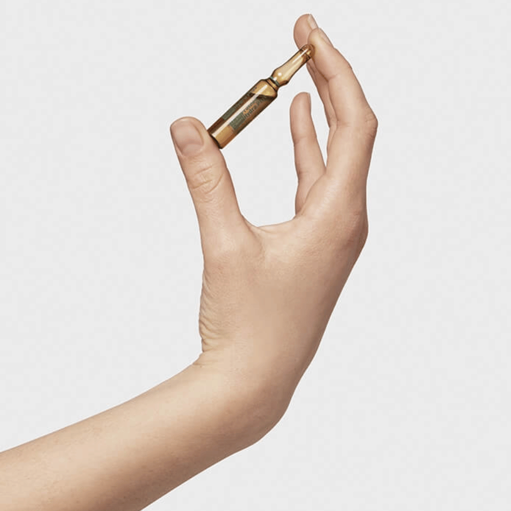 - Apply half an ampoule to the face, neck and neckline.