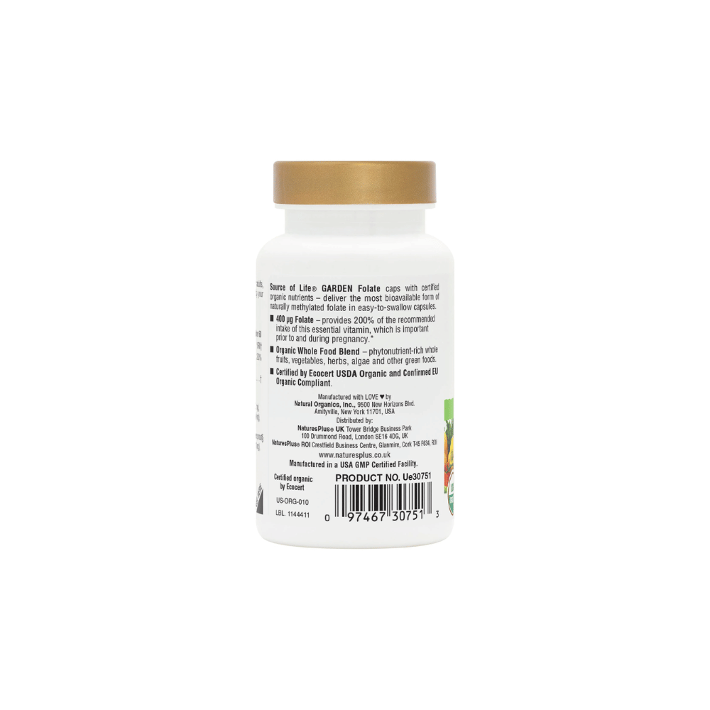• BROAD INGREDIENT BASE: Source of Life Garden Folate supplies 400 mcg of folate derived from lemon peel along with a broad array of natural folates in an organic whole-food base. In addition, this product provides key folate cofactors to assist absorption and utilisation.