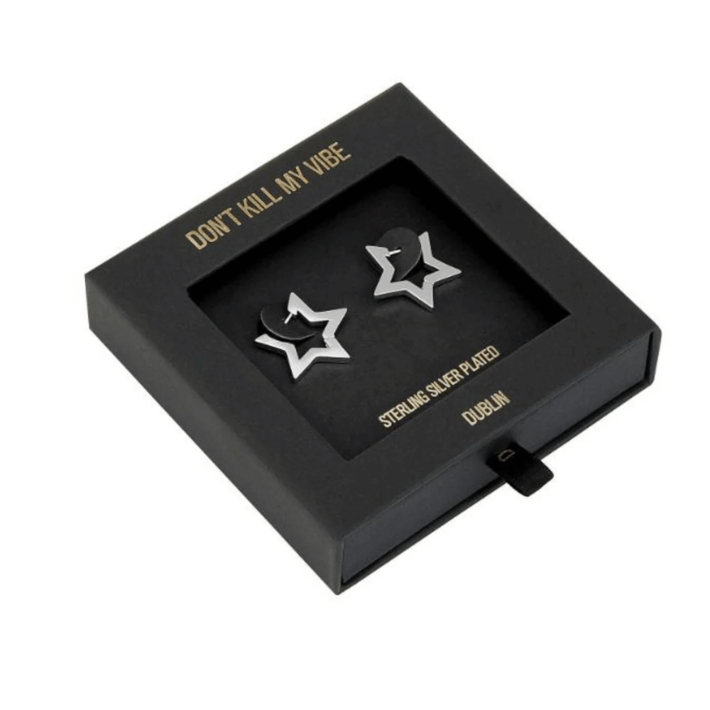 Shine bright with the Not Yer Average Star Hoop Earrings in Silver—mini hoops with a celestial twist. Measuring 25mm x 2mm, these star-shaped beauties are plated in sleek sterling silver over a base of 100% recycled brass, blending sustainability with standout style. Designed in Ireland and engraved with the signature DKMV mark, they bring playful charm and a touch of sparkle to any outfit. Each pair arrives in a soft cotton duster bag, making them perfect for gifting or keeping safe while you dazzle your way through the day.