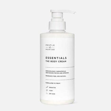 Pestle & Mortar Essentials Body Cream is a clean, clinical, and effective daily body cream formulated with avocado, squalane, shea butter, and Gotu Kola leaf extract, formulated for the entire family. It hydrates and protects the skin, effectively treating common skin complaints like dry skin, itchy skin, and eczema-prone skin.