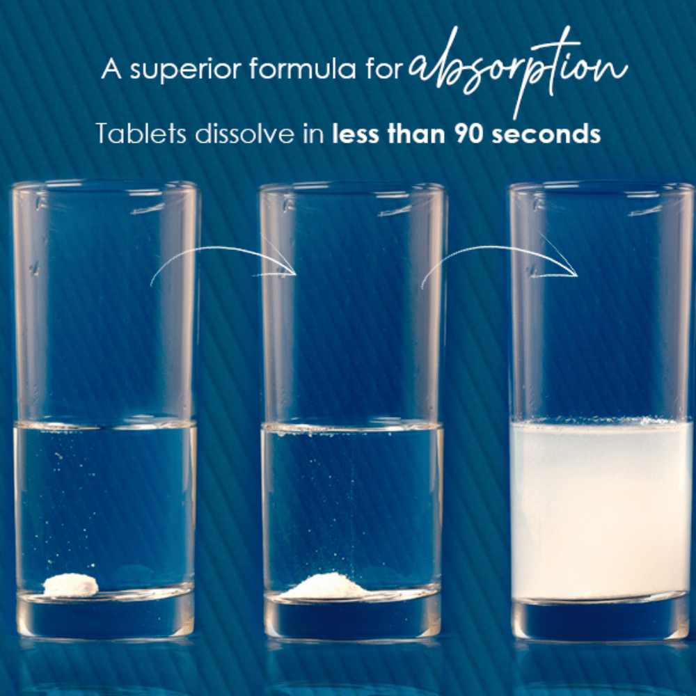 You as a consumer can test if your magnesium tablet is effectively dissolved. We have placed two magnesium tablets in separate glasses of water. In the left glass the BioActive Magnesium tablet is completely dissolved and ready to be absorbed after a few minutes. In the glass to the right we put a magnesium tablet from a competitor. Even after 24 hours in the water the competitor's tablet shows no sign of dissolving.