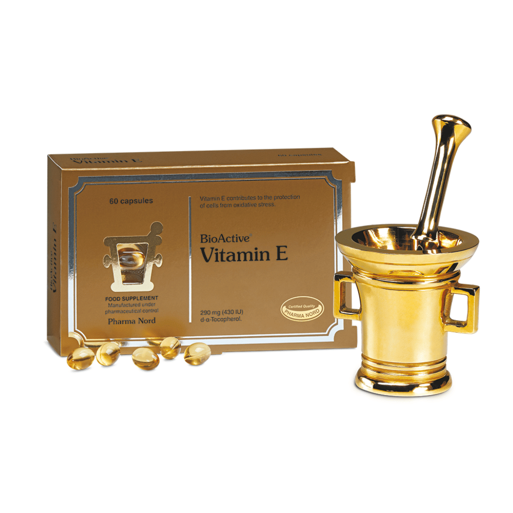 BioActive E Vitamin is a strong vitamin preparation with pharmaceutical-grade vitamin E. It consists of clear, soft gelatin capsules with purified soybean oil, and natural d-alpha-tocopherol. Each capsule contains 350 mg/525 IU of vitamin E.