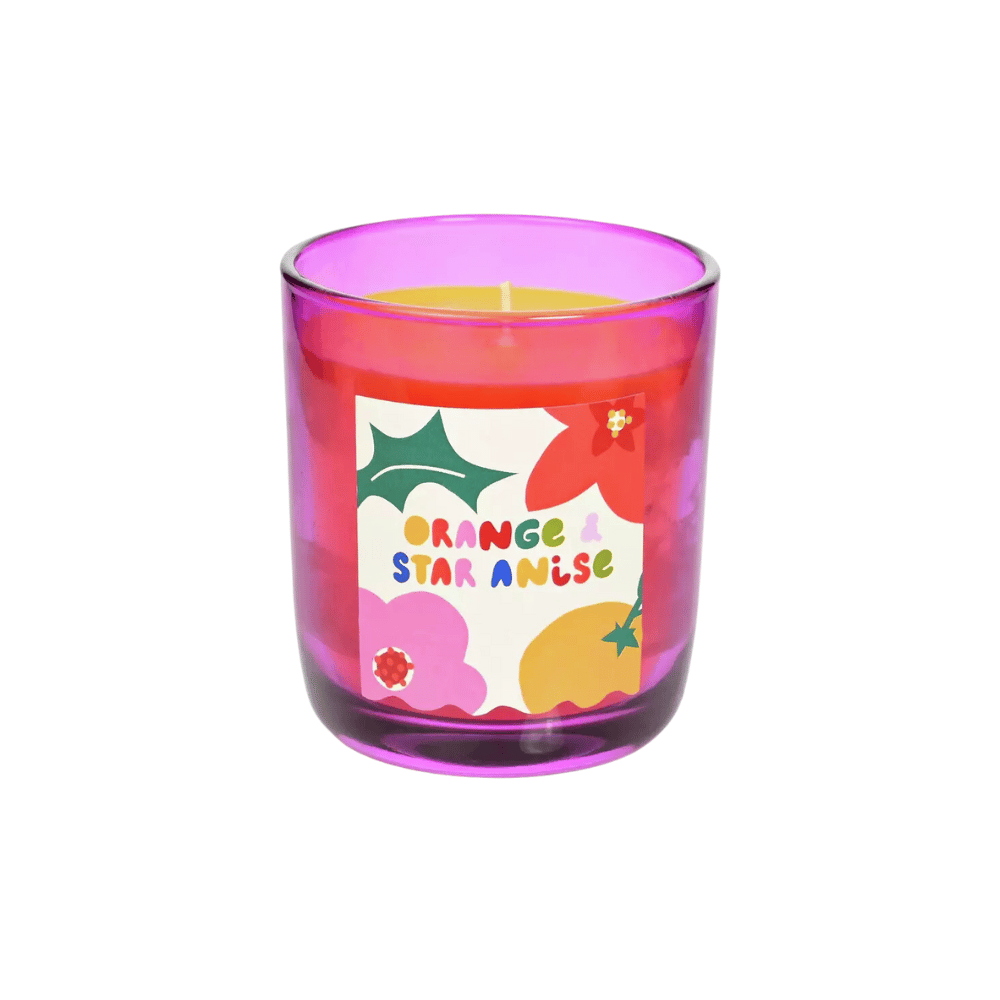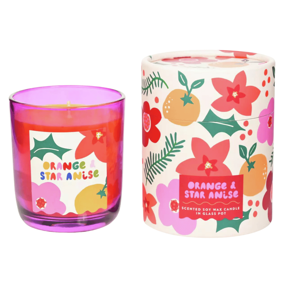 Infuse your festivities with the scented candle in a glass pot from Raspberry Blossom, exclusively available. This 200g pink candle is a symphony of scents, evoking notes of clove, clementine, star anise, and cedar woods. Crafted from soy wax, it boasts a burn time of approximately 32 hours. Elegantly packaged in a full-color gift tube, the colored glass pot can also serve as a charming tealight holder once the candle is spent.