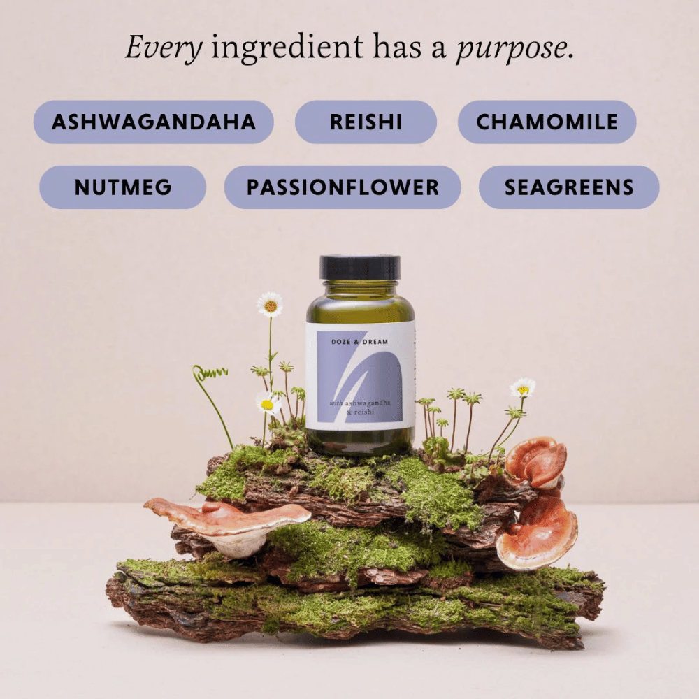 Ashwagandha root, Passionflower herb, Reishi dual extract*§, German Chamomile flowers, Nutmeg, Seagreens* (Ascophyllum nodosum), Vegetable Cellulose (capsule)