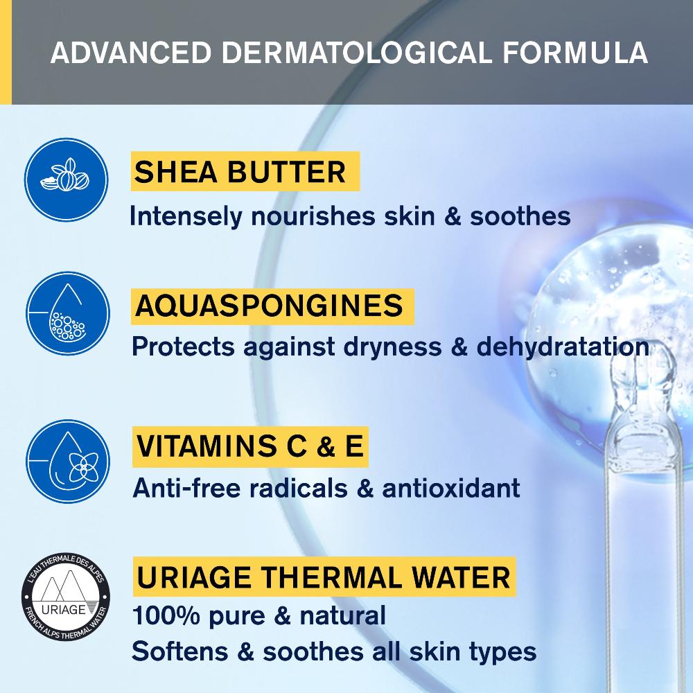 - Bursting with moisturizing and lipid-replenishing active ingredients, it protects against desquamation and restores skin's softness and suppleness.