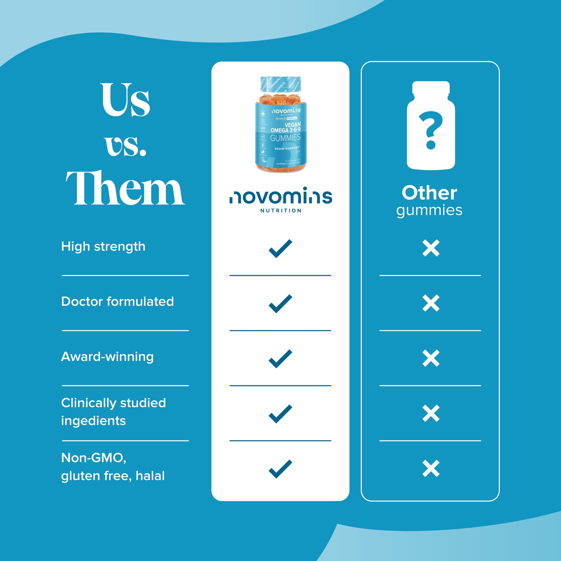 Whether you're looking to support heart health or just want to give your wellness routine a boost, Novamins Vegan Omega gummies are a great choice.