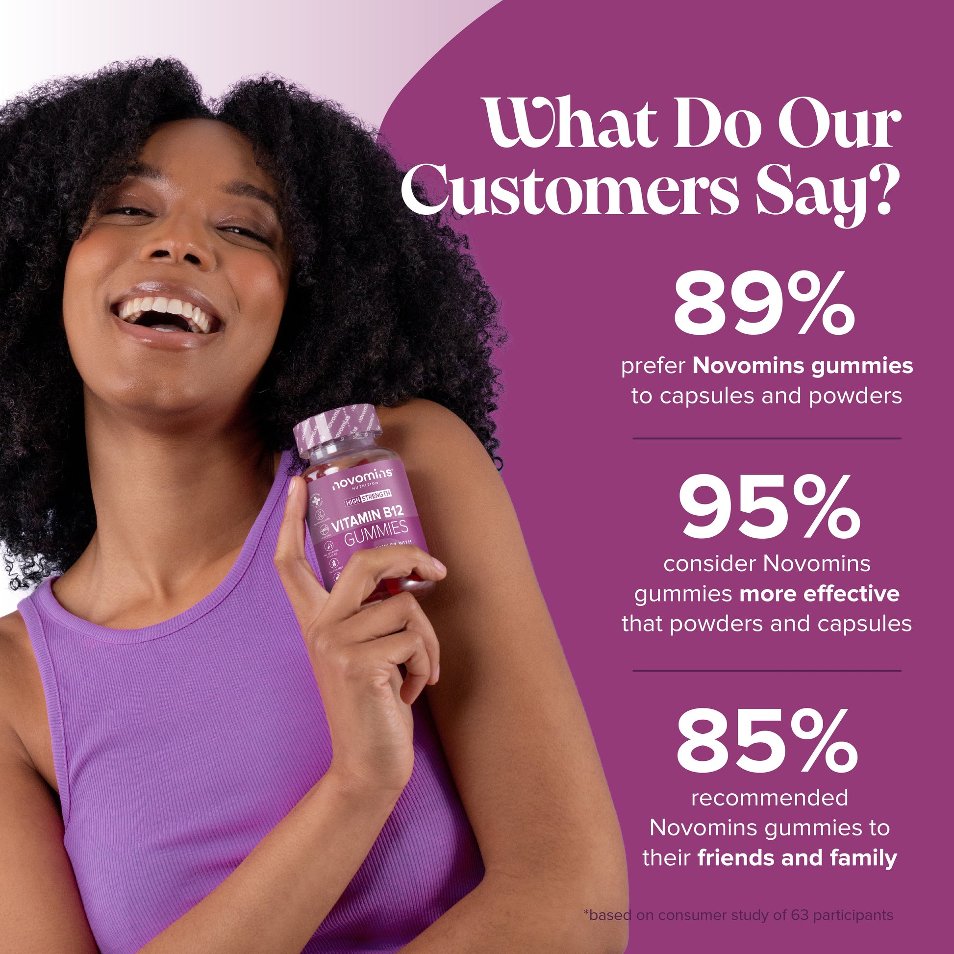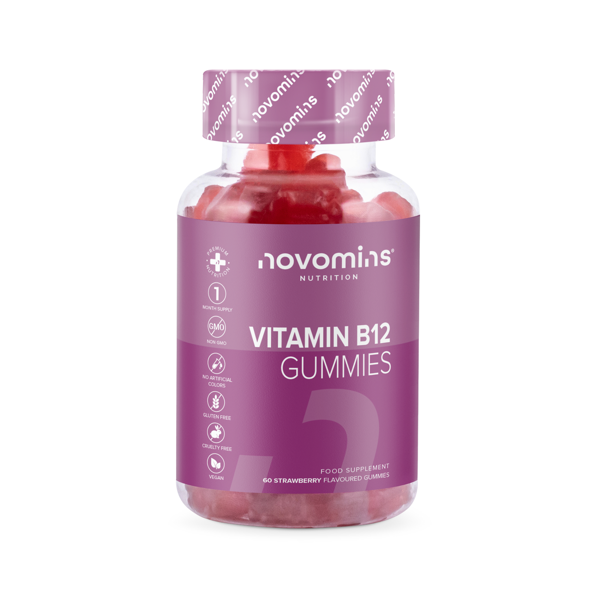 Novomins Vitamin B12 gummies are a delicious and convenient way to get your daily dose of this important nutrient. Made with natural flavours and colours, these gummies are vegan, gluten-free, and non-GMO.