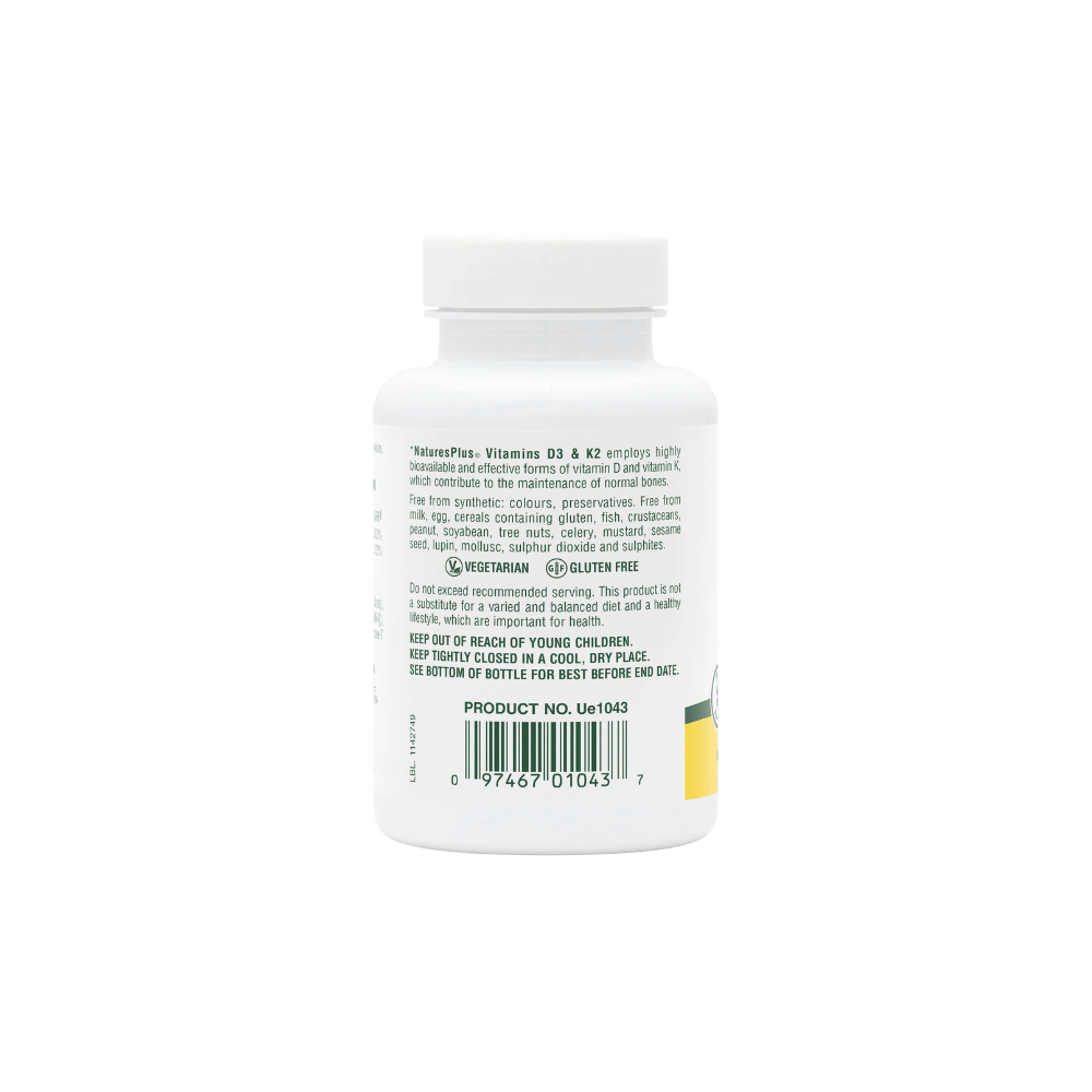 - PURE AND NATURAL: NaturesPlus Vitamin D3/K2 conforms to the strictest standards for purity. It is free from artificial colours and preservatives and is free from the common allergens yeast, wheat, gluten, soya and dairy.