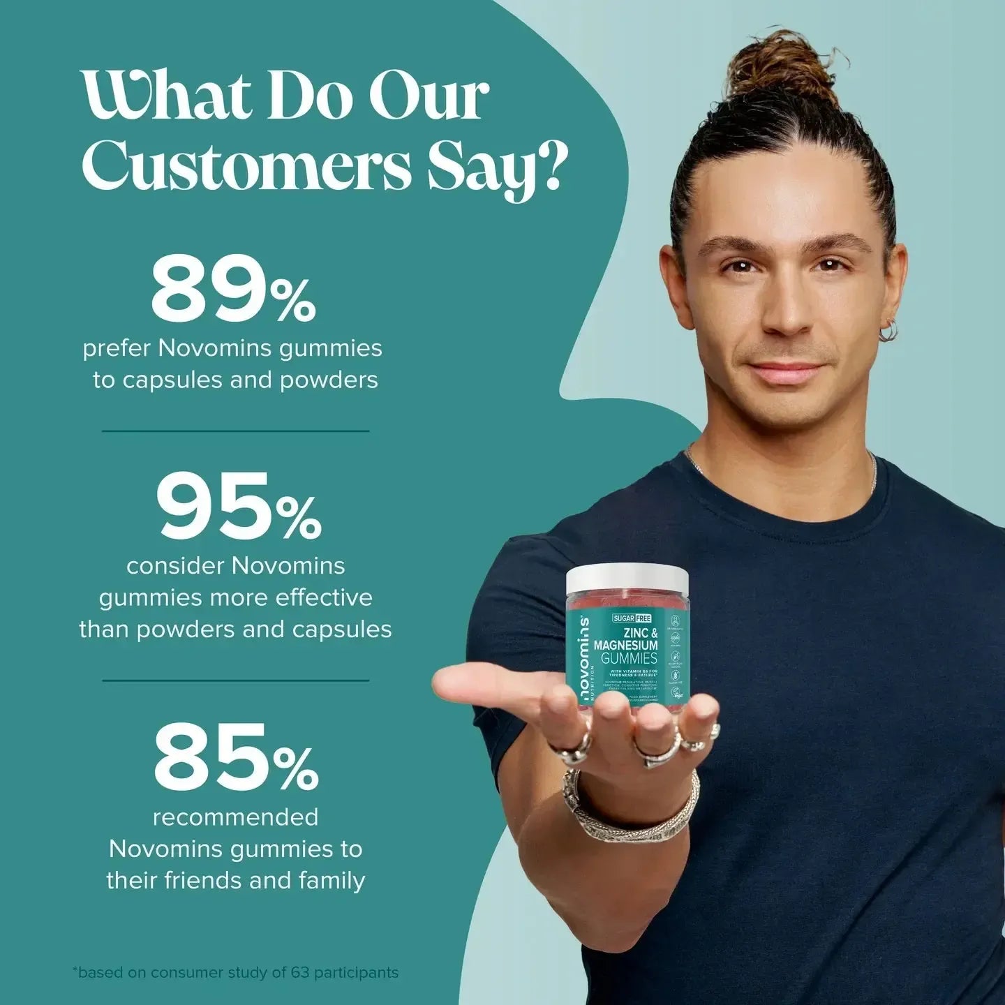 - WHY CHOOSE NOVOMINS ZINC AND MAGNESIUM GUMMIES?: At Novomins, we take pride in offering superior quality Zinc and Magnesium supplements that are not only safe but also ethically sourced.